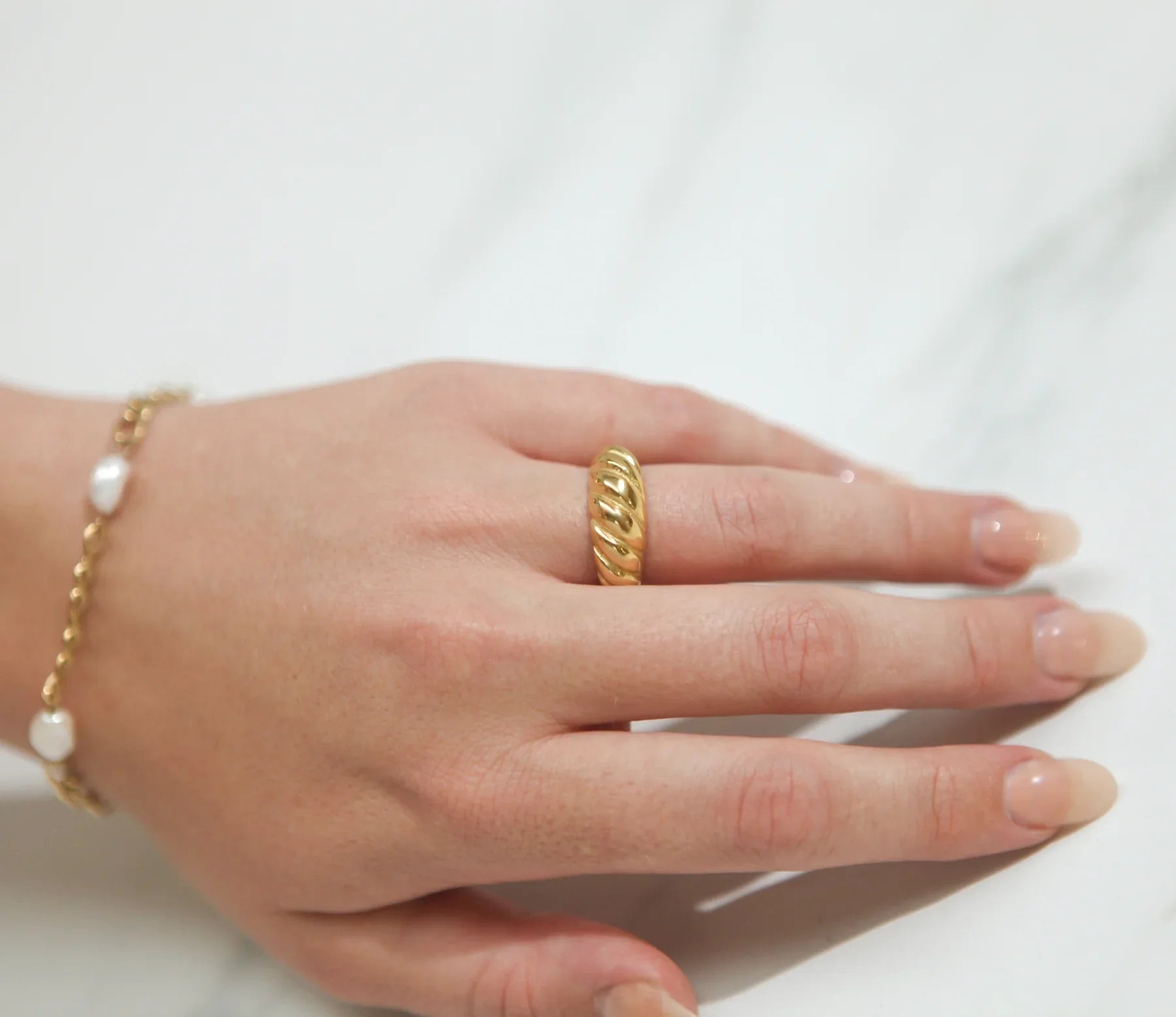 • 18k gold plated stainless steel/polished stainless steel Croissant Ring